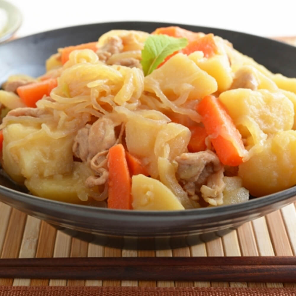 野菜(じゃが芋、人参、玉ねぎ)、こんにゃく、豚肉、醤油(小麦・大豆を含む)、砂糖・ぶどう糖果糖液糖、みりん、清酒、かつお節エキス、食塩/調味料(アミノ酸等)、酸化防止剤(ビタミンC)